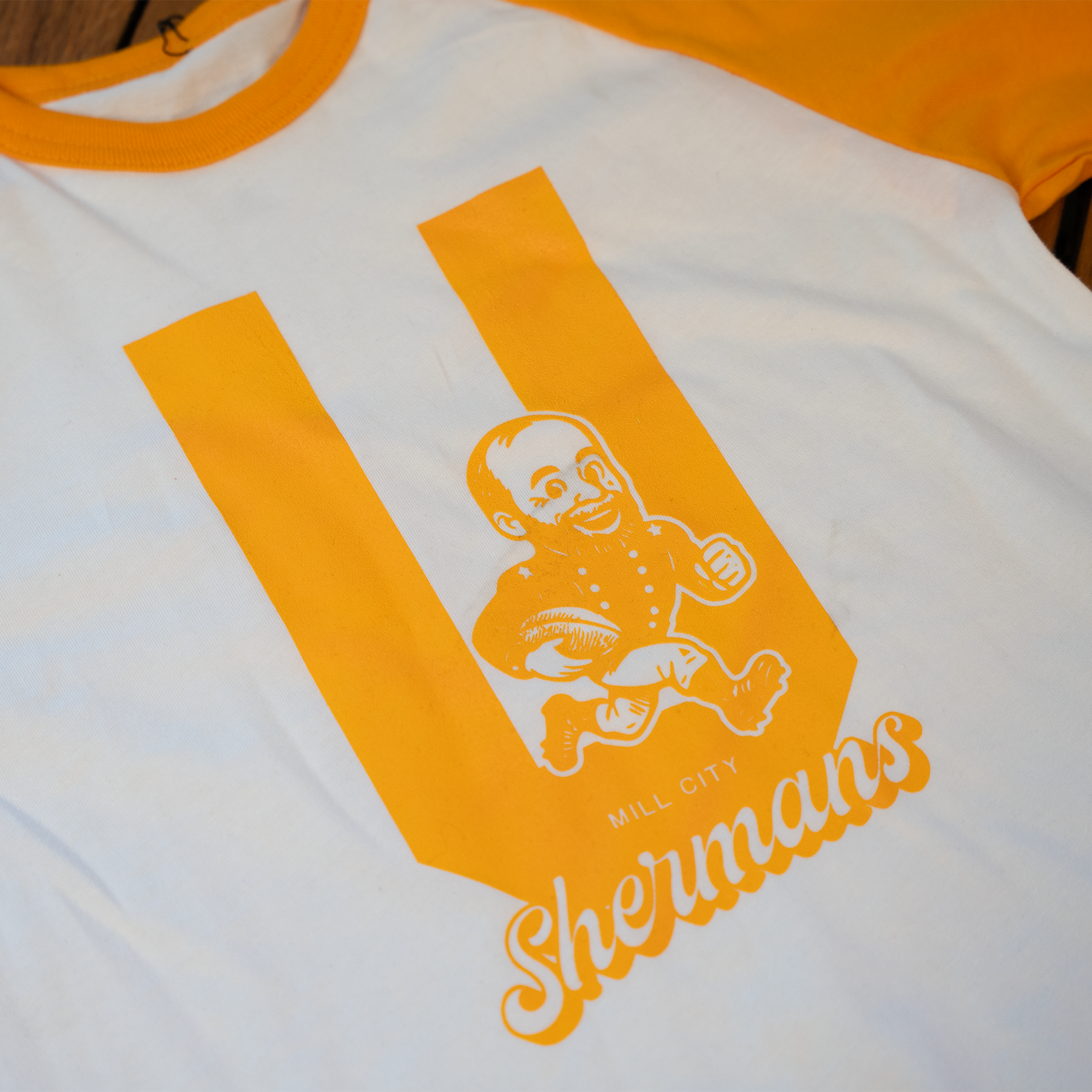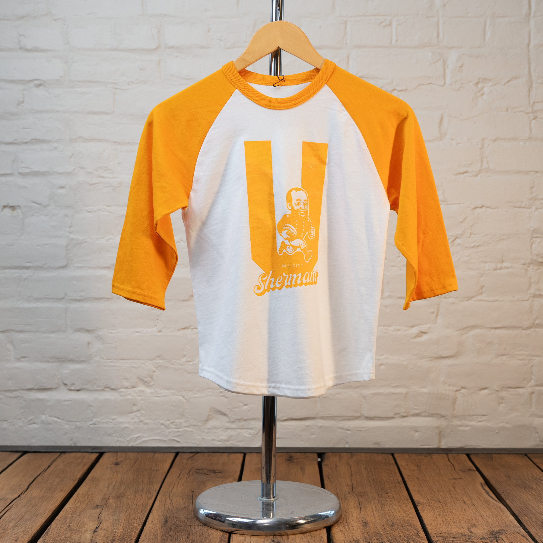New to the Mill City Spirit Wear Collection: Charging Shermans Youth Raglan Tee.