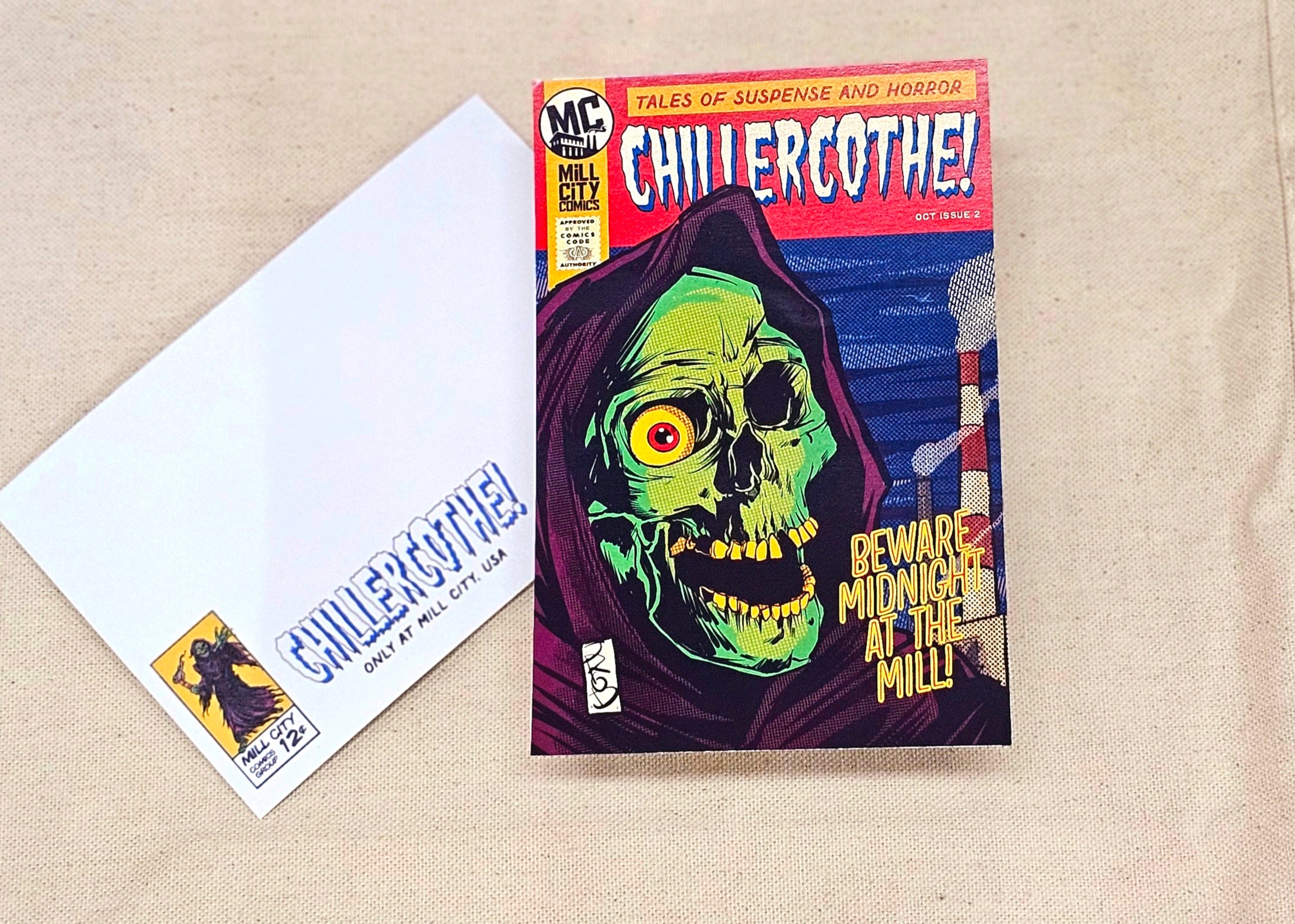 Senders Beware! You'll be in for a scare! Introducing a replica comic book cover of our second edition of Chillercothe now available on a 4" x 6" postcard. Collect all 4!