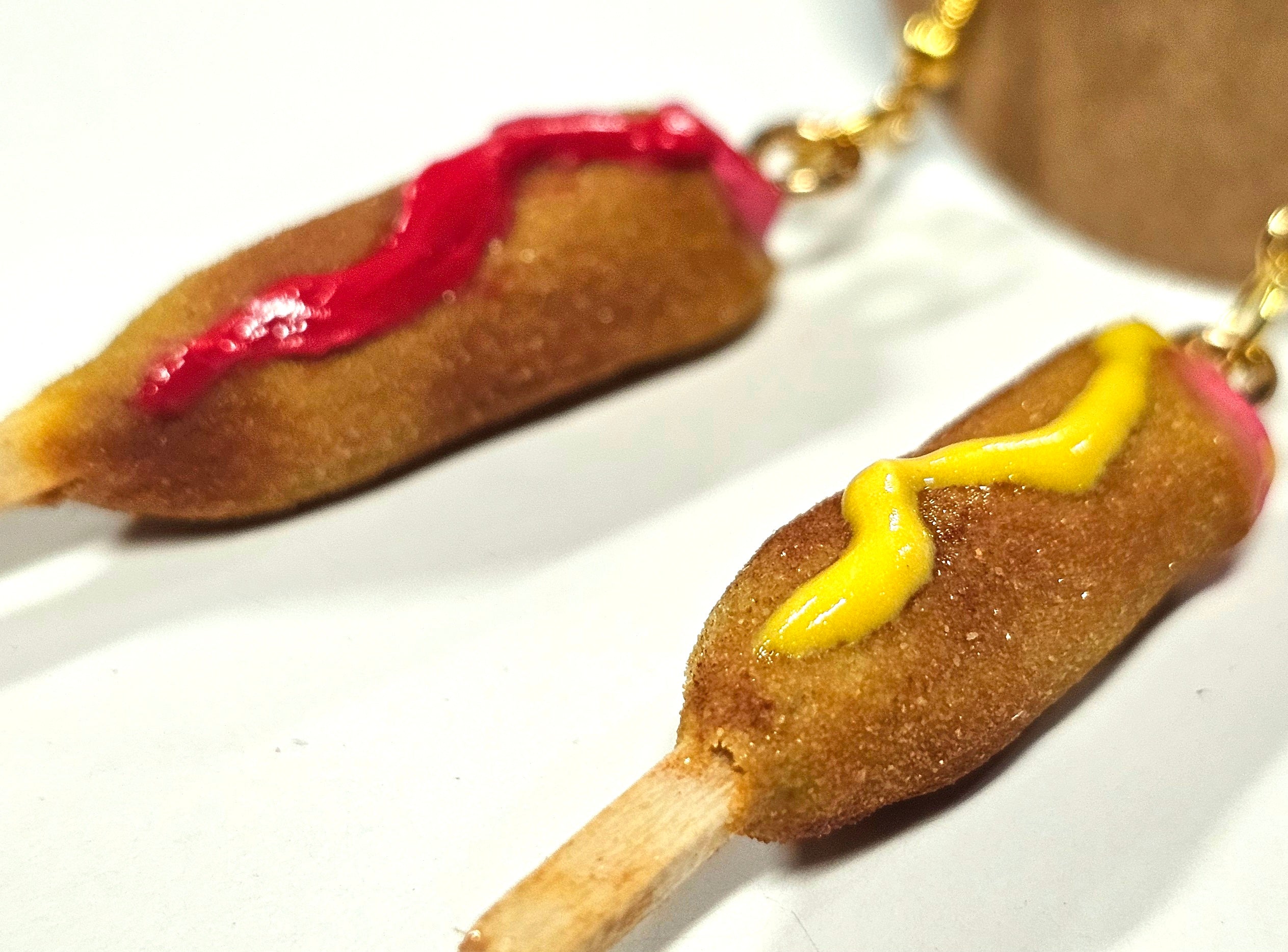 As corny as it may be, corndogs are a staple in the hearts of Americans and State Fair goers everywhere. This pair comes with a pair of corndogs complete with a glossy ketchup & mustard finish on one of each earring. Express yourself with the ear art that shows the world what's truly in your heart.