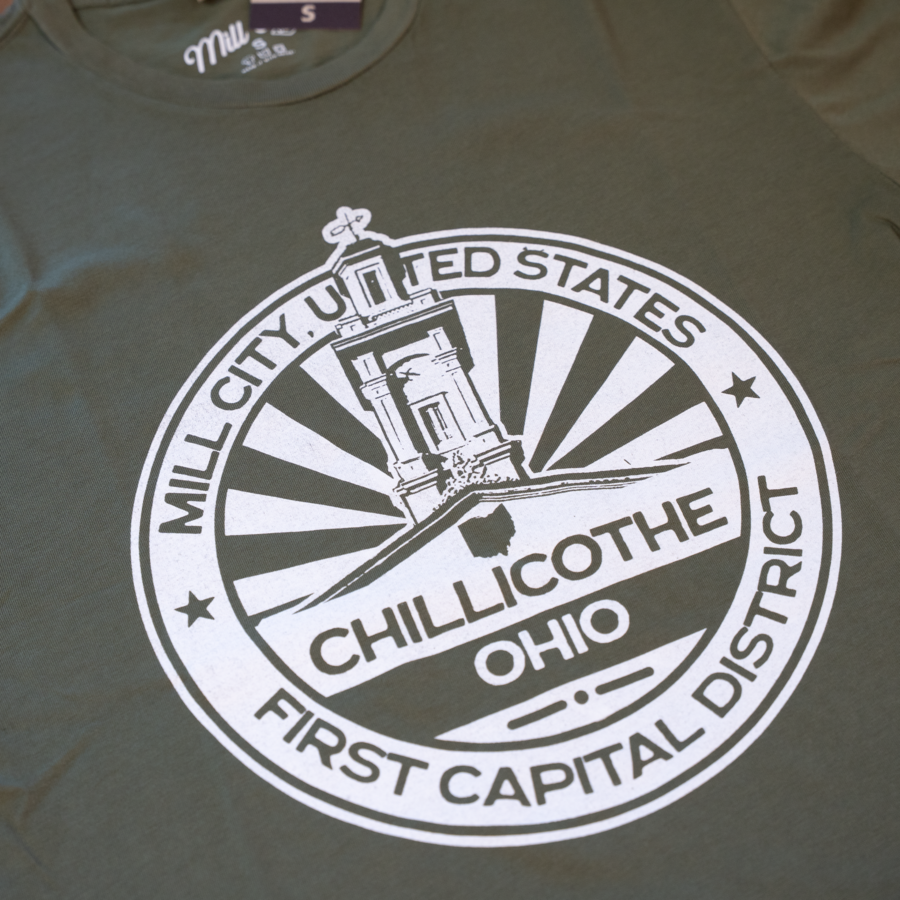 Mill City’s “First Capital Courthouse” tee proudly features Chillicothe’s historic courthouse—one of Ohio’s oldest and most treasured landmarks. With timeless architecture and deep roots in our state’s story, this beautiful building stands as a symbol of our legacy. Wear this tee with pride for the past, present, and future.